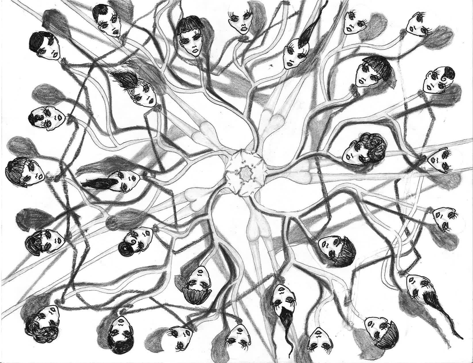 Blind caricature drawing is an exercise I do to get out of rigid and perfectionistic practices. I look at my subject without looking down at my paper and draw them for about a minute and then embellish, while looking, with paints and markers.