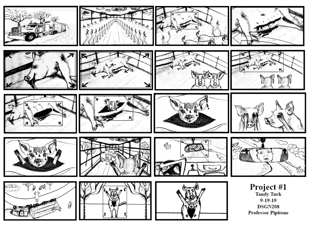Here's one storyboard minus shot labeling and descriptions from my Intro to Storyboarding class at SCAD. We were given a very peculiar script so here are the visuals without any context.