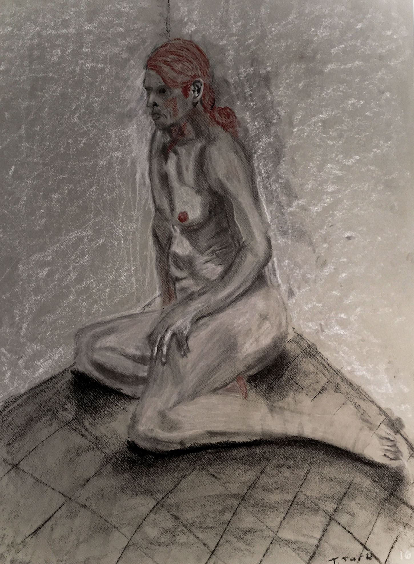 Blind caricature drawing is an exercise I do to get out of rigid and perfectionistic practices. I look at my subject without looking down at my paper and draw them for about a minute and then embellish, while looking, with paints and markers.